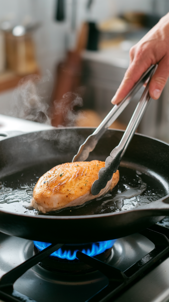 Heat olive oil in a large skillet over medium-high heat. Once hot, add the chicken and cook for 4โ€“5 minutes per side until golden and cooked through. Remove and set aside.