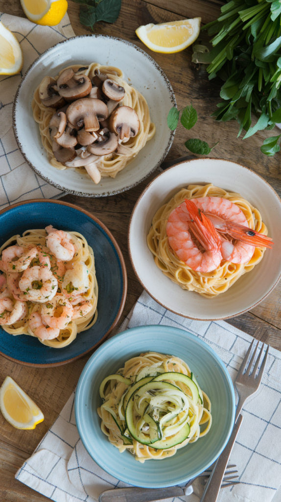 - Seafood Carbonara → Swap guanciale for shrimp or scallops.